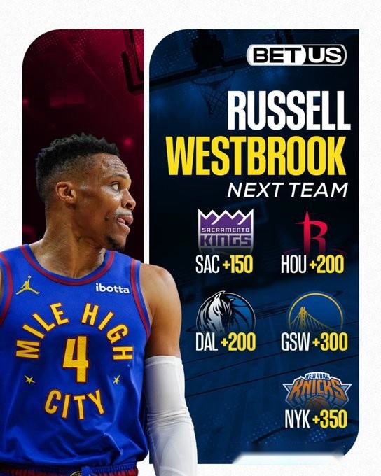 近日,美媒晒出了自由球员拉塞尔-威斯布鲁克的下家赔率,独行侠队异军突起冲到了榜单的第二位。