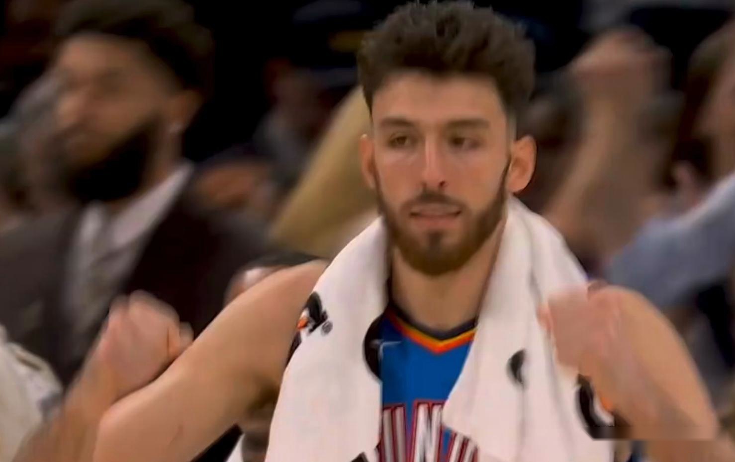 切特还在握拳庆祝。他17中11得到28分7板2助攻,这场比赛的效率拉满了。即便最终犯满离场,但他在第一节算是燃尽了。如果他可以延续这样的效率,雷霆内线的杀伤力会非常强。