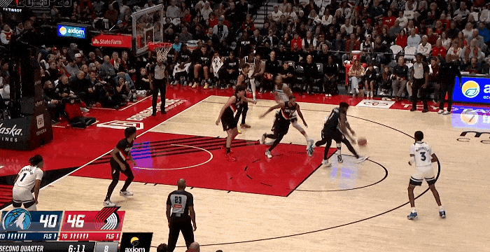第三节开拓者谢登-夏普拿下10分,森林狼爱德华兹拿下13分,第三节结束开拓者95-88领先森林狼