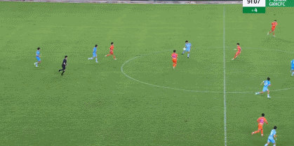 第90+1分钟,刘骐玮大范围出击,将对方球员撞倒