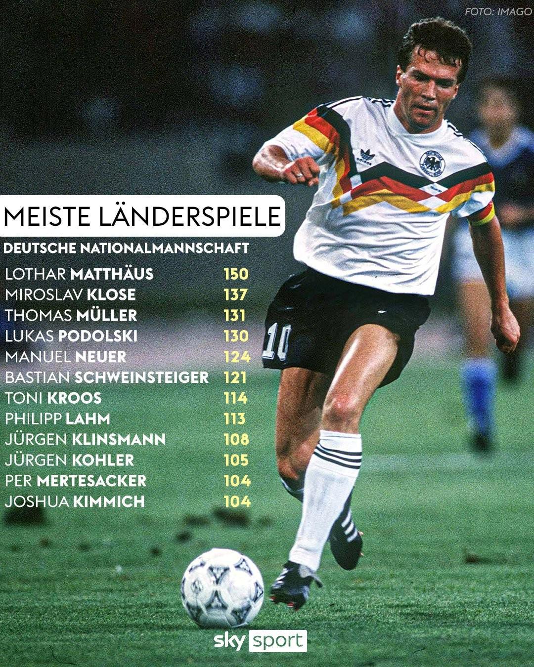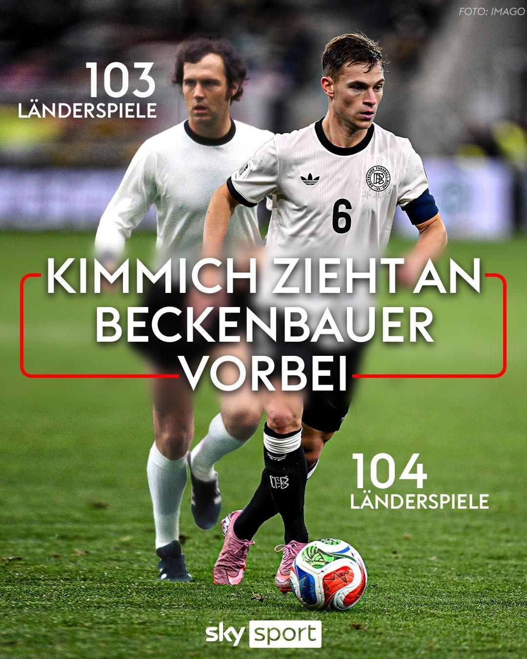 根据德国天空体育的统计,本场比赛是现年30岁的基米希职业生涯至今第104次代表德国国家队出场,他也就此超越了贝肯鲍尔(103场),升至德国国家队队史出场数排行榜的并列第11位。
