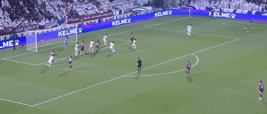 第90+8分钟,法比奥-利马头球摆渡,阿迪勒破门扳回一球,阿联酋1-2卡塔尔