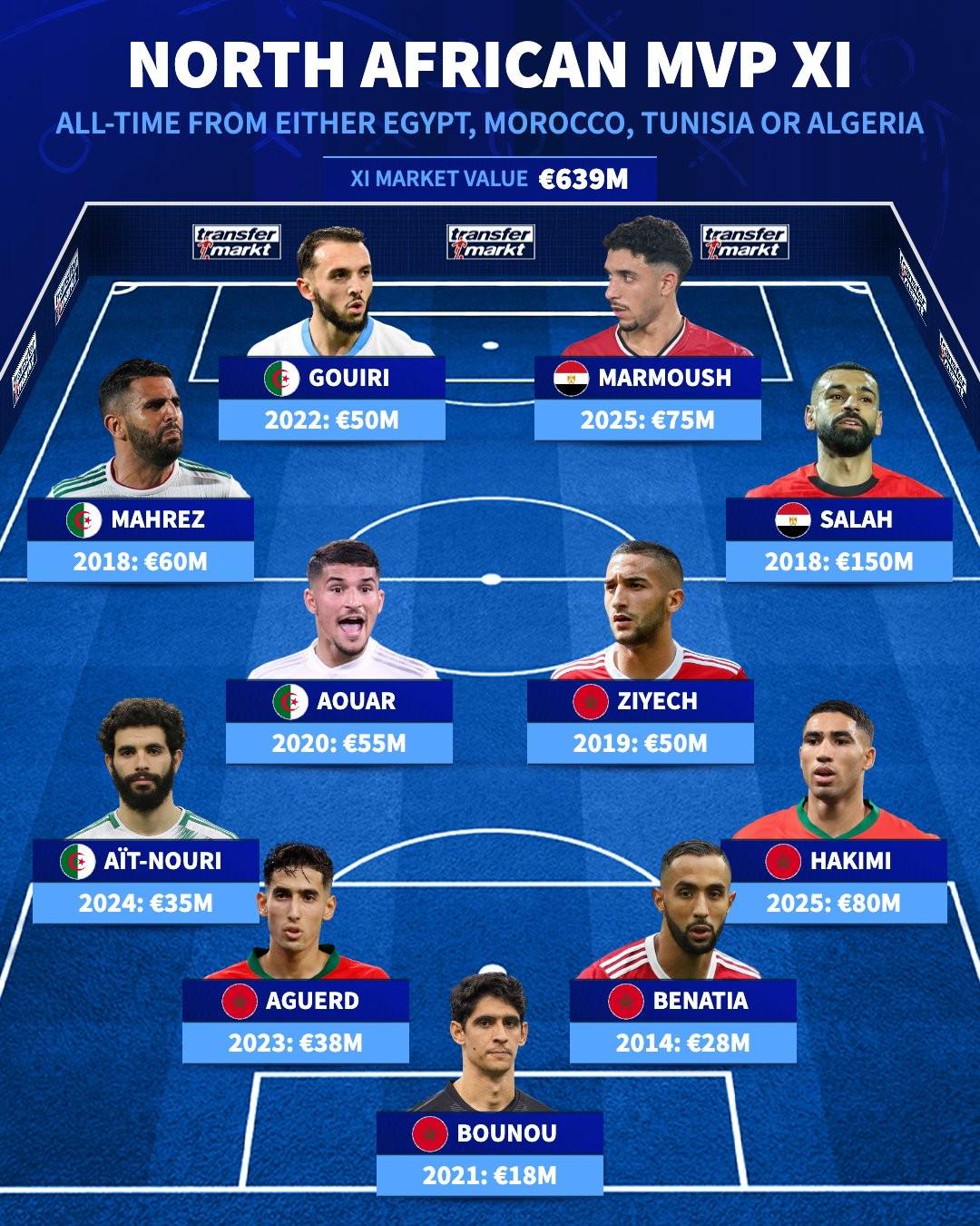 德转列北非四国历史最贵11人阵容: