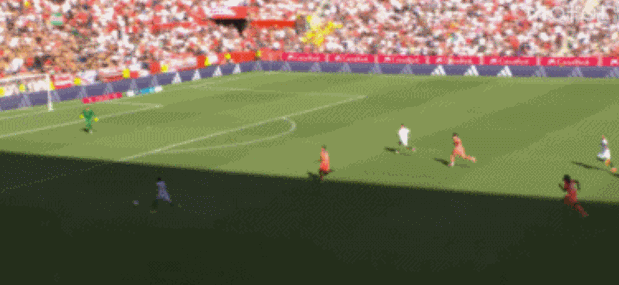 第45+7分钟,佩德里送助攻,拉什福德攻入个人西甲首球!巴萨1-2塞维利亚