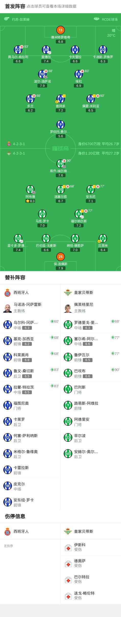 第54分钟,里卡多-罗德里格斯传中,库乔头球破门,贝蒂斯1-1西班牙人