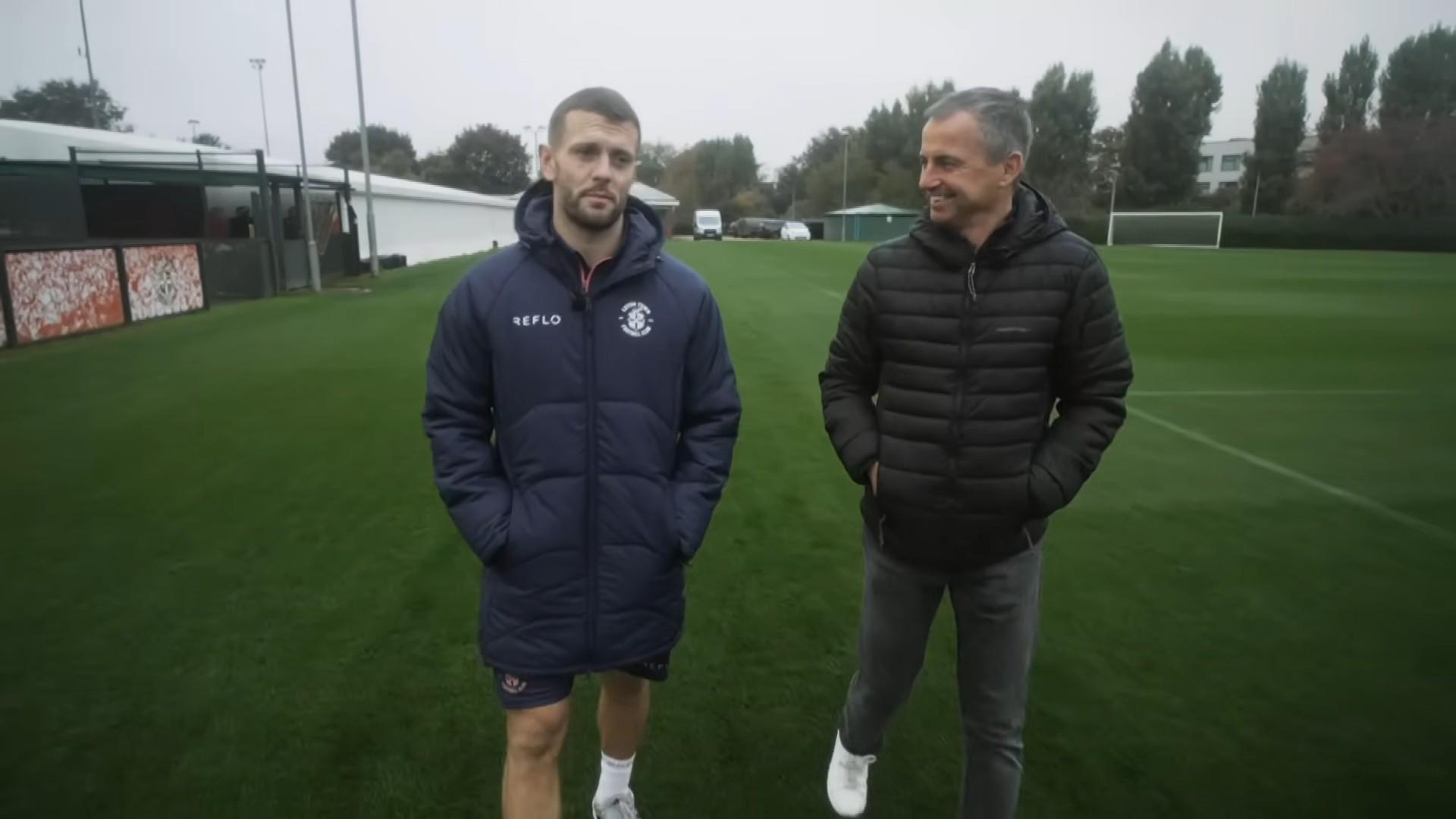 其实就在这片球场上。2021年我回到卢顿,内森-琼斯邀请我来训练。我们聊得很好,他也很鼓舞我。我非常喜欢训练和他营造的氛围,但也意识到自己在身体上已经无法适应那样的强度。那是我第一次认真想,也许我该考虑另一条路了。