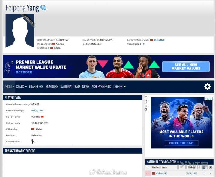杨力维、杨舒予的父亲,前男足国青队球员杨飞鹏去世,享年59岁