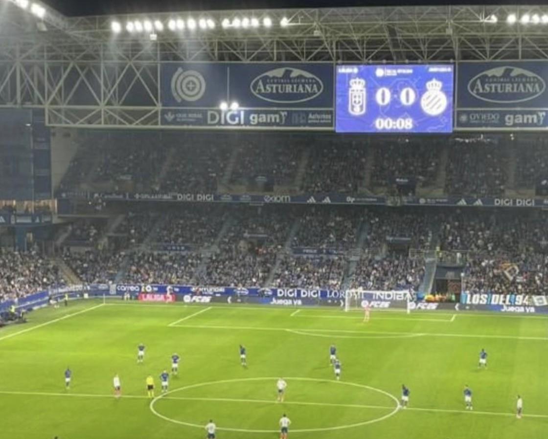 这是因为,在比赛开始后的15秒内,奥维耶多与西班牙人队球员一直站立不动,以抗议巴塞罗那和比利亚雷亚尔在迈阿密的海外比赛。