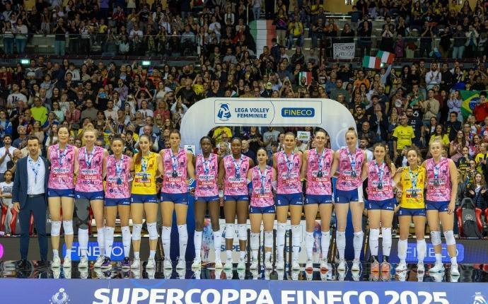 10月18日,2025意大利女排超级杯:米兰3-2(18-25、25-22、25-20、13-25、15-12)力克科内利亚诺,结束了后者自2019年以来的霸业并夺得俱乐部首个超级杯。埃格努30分(决胜局独得10分)荣膺MVP、拉涅尔14分,哈克32分、西拉11分、朱婷10分(37扣9中1拦)。
