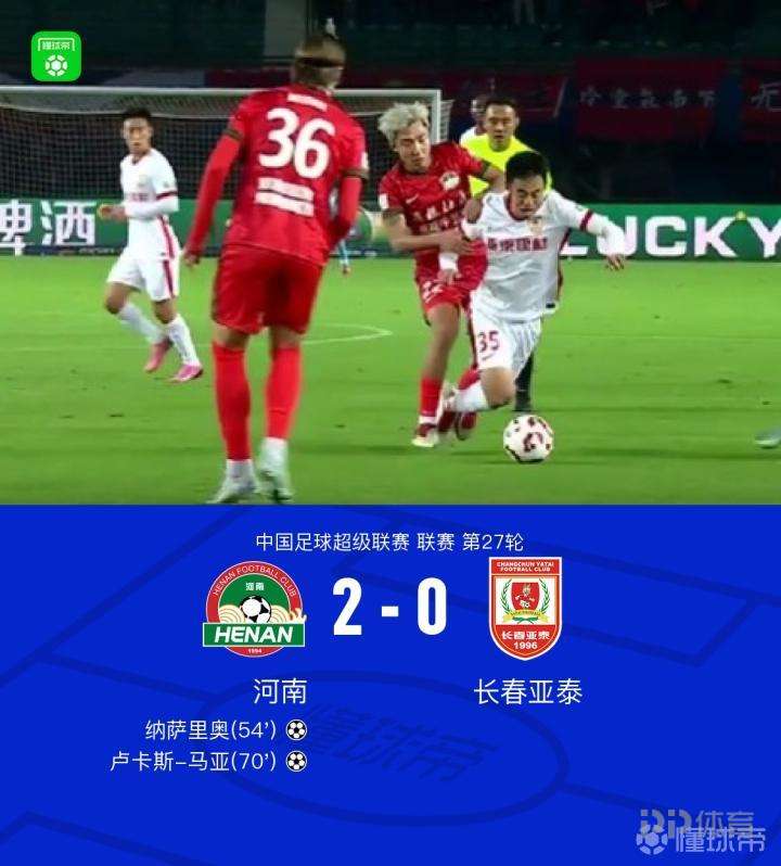 河南2-0亚泰,马亚建功,纳萨里奥破门