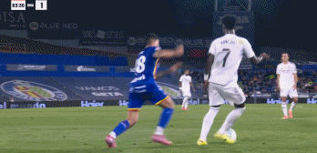 第77分钟,刚刚替补登场仅1分钟的恩约姆对维尼修斯暴力犯规染红,赫塔费少打一人