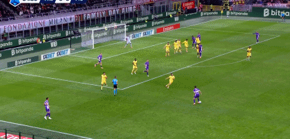 第56分钟,法乔利长传到禁区,拉涅利头球摆渡门前,迈尼昂扑救打在加比亚身上,戈森斯乱战中抢射破门,AC米兰0-1佛罗伦萨!