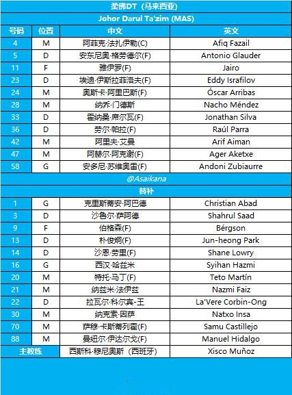 柔佛新山首发:58-苏维奥雷、5-格劳德、23-伊斯拉菲洛夫、33-霍纳坦-席尔瓦、36-劳尔-帕拉、 4-阿菲克-法扎伊勒 、24-奥斯卡-阿里瓦斯、 28-纳乔-门德斯 、 42-阿里夫-艾曼 、47-阿克切、11-雅伊罗