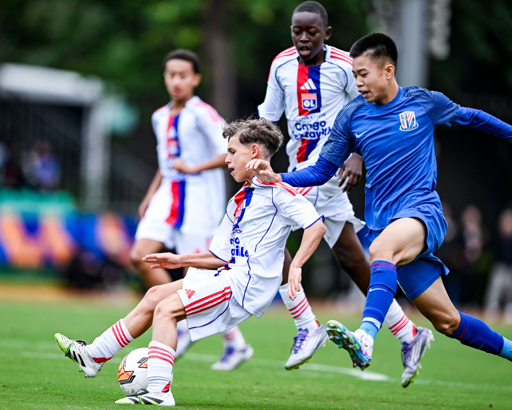 首先,精心训练铸就的效率优势,是上海申花U14队本场取胜的重要原因。据说,申花青训 “精英加速计划” 将训练拆解细化,从无球跑位角度到触球落点选择,均通过数据记录与视频复盘精准打磨。这种训练模式催生了 “压迫 - 断球 - 快速转移” 的高效战术:开场37秒唐孝恩闪击破门,3分钟内杨轩铭点球扩大比分,上半场便以 4:0 锁定胜局。数据更能说明问题:申花预期进球值达 1.8,而里昂仅0.4,意味着申花每3次机会就有8成把握破门。反观里昂,虽然控球率很高、传球成功率也高,但却因节奏拖沓屡屡陷入申花的逼抢陷阱,全场射门次数都不多。