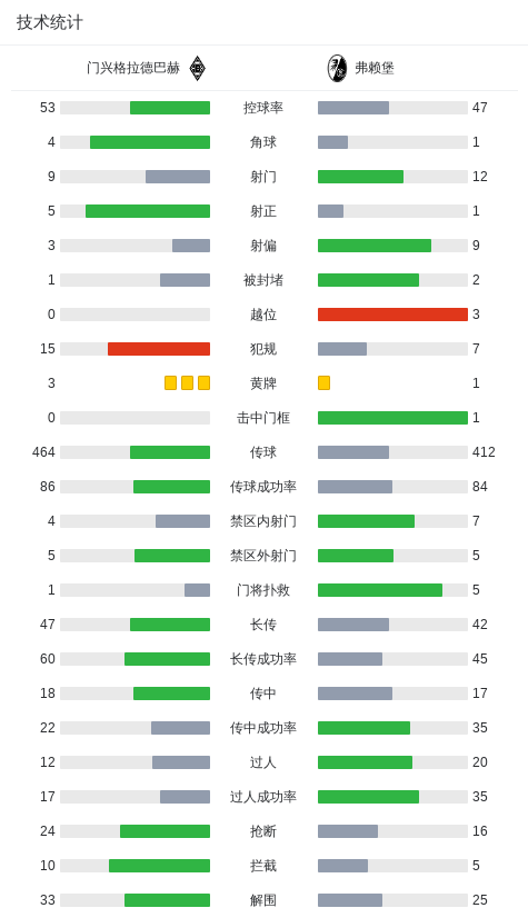 门兴格拉德巴赫0-0弗赖堡,双方破门乏术