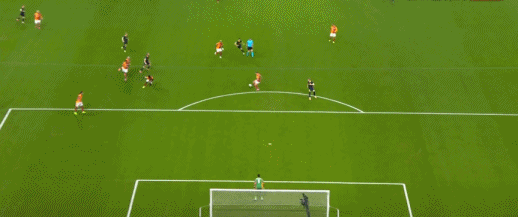 第39分钟,海于格门前绝佳机会射门,球打偏了