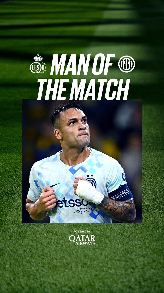 北京时间10月23日,国际米兰官方宣布,他们的队长劳塔罗当选欧冠联赛阶段第3轮他们客场4-0大胜圣吉罗斯联合的队内最佳球员。
