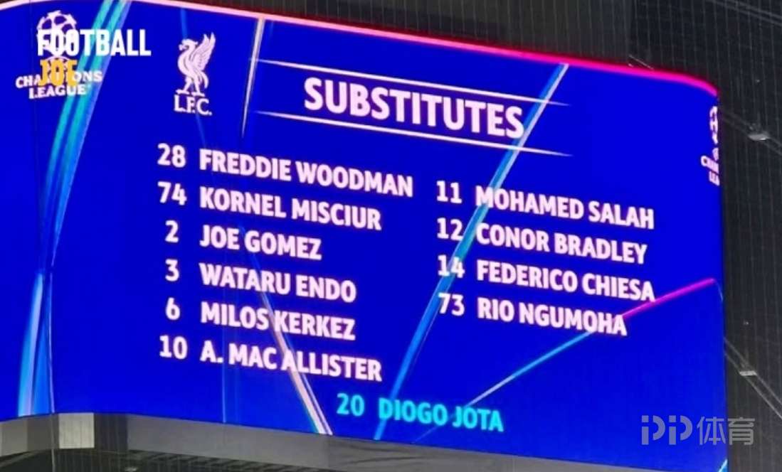 泪目!法兰克福大屏幕为利物浦替补名单加上20号若塔