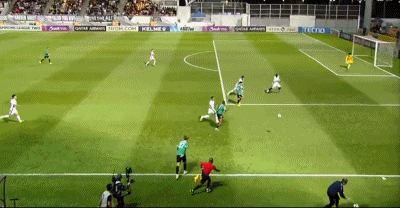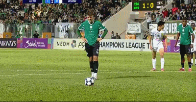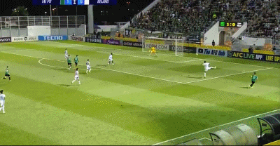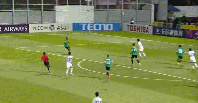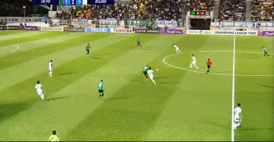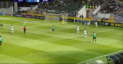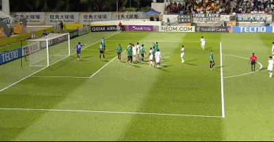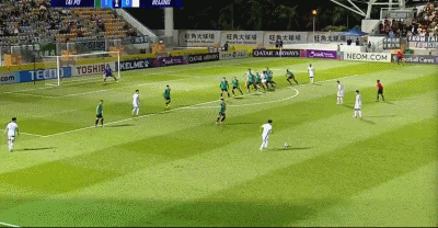 第36分钟,张稀哲传中,柏杨回头望月扳回一城,国安1-2落后大埔