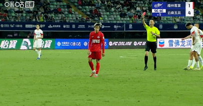 第90+8分钟,茹子楠放倒佩德罗-恩里克,裁判出示红牌将其罚下