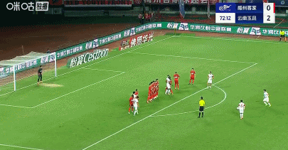第73分钟,世界波,迪力穆拉提任意球破门,云南玉昆三球领先