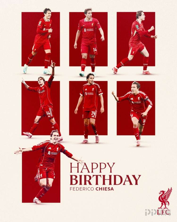 利物浦官方社媒晒海报,祝索博斯洛伊、基耶萨生日快乐