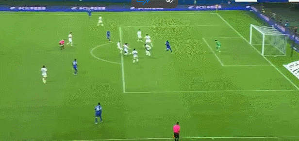 第43分钟,吴曦面对多人包围抢射扳回一城,申花1-2落后英博