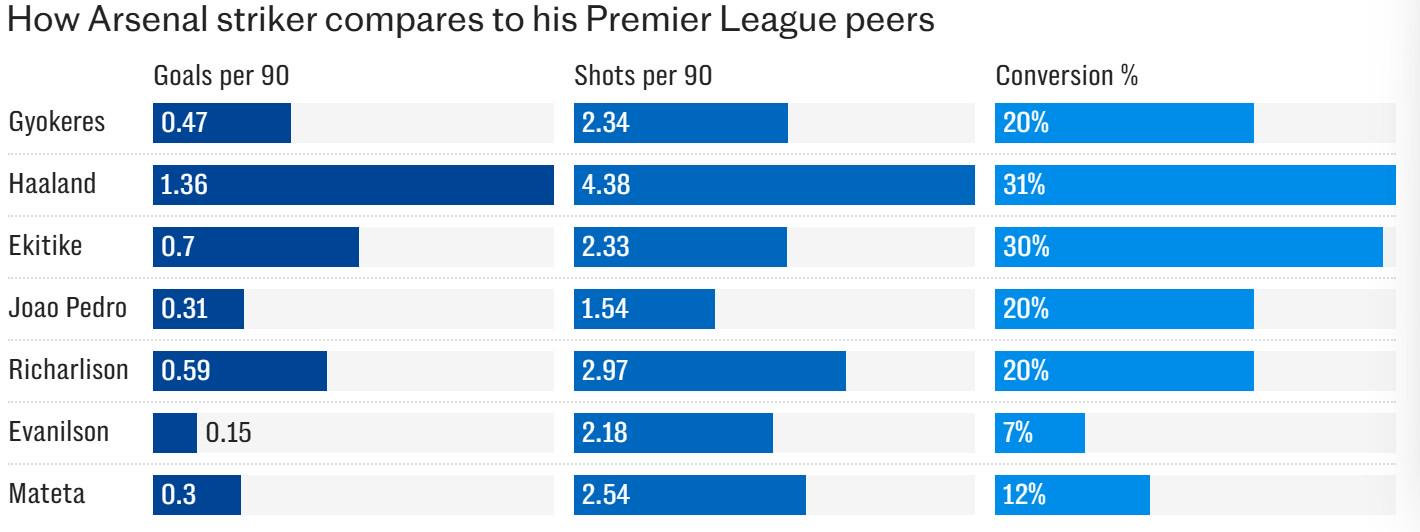 你对于哲凯赖什持什么立场?也许你的答案取决于你的期望。 对于那些期待一个能进30球的前锋、一个潜在金靴奖得主的人来说,这头几个星期可能令人失望。但对于那些期望一个能为阿森纳锋线增添新维度、为队友创造空间并改变进攻角度的球员来说,哲凯赖什目前正在满足大部分的要求。