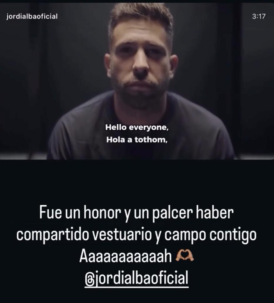 在阿尔巴宣布赛季结束退役后,巴萨队长之一的拉菲尼亚在社交媒体致敬前队友。